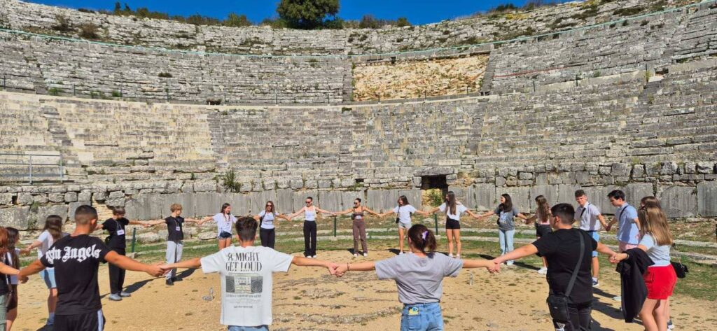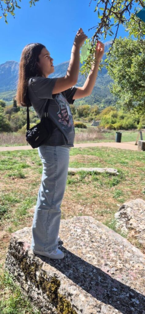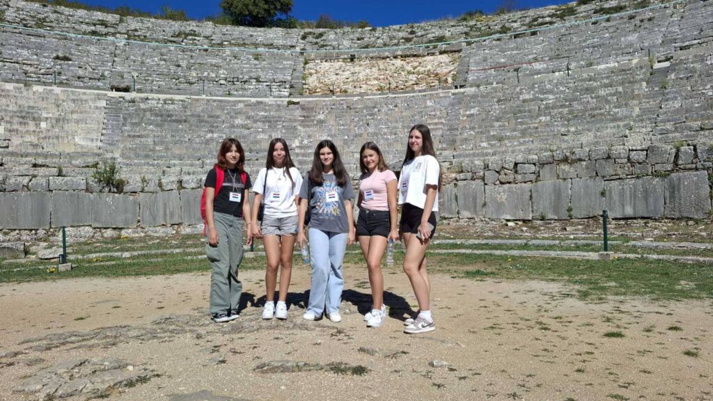 Drugi dan mobilnosti u Grčkoj započeo je kratkim predavanjem o grčkom jeziku i pismu gdje su se sudionici trebali predstaviti na grčkom jeziku. Uslijedile su igre opuštanja i upoznavanja sudionika. Posjetili smo jedan od najočuvanijih starogrčkih amfiteatara, Dodoni. Prema Herodotu to je mjesto kuće bogova s mnoštvom hramova. Tu su pronađeni ostatci metalnih pločica koje su pod zaštitom UNESCO-a, a na kojima su pisane želje i molbe koje su bogovi trebali uslišiti. Obišli smo i sveučilišnu knjižnicu gdje smo se posebno zadržali na odjelu za osobe s posebnim potrebama, posebice slijepe i slabovidne. Isprobali smo pisaći stroj za pisanje brajice, kao i PIAF stroj koji prevodi slike i slova u složene taktilne grafike čitljive slijepim i slabovidnim osobama.