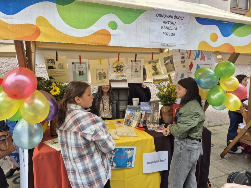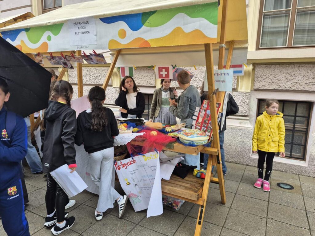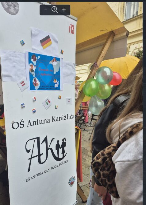 Slijedilo je predstavljanje aktivnosti na štandovima. Ove su godine po prvi put sudjelovali učenici OŠ Petrijevci iz Osječko-baranjske županije, a nakon više godina ponovno su se pridružili i učenici OŠ Ivana Gorana Kovačića iz Velike. Ostale škole sudionice bile su: OŠ fra Kaje Adžića Pleternica, Gimnazija Požega, OŠ Stjepana Radića Čaglin, Ekonomska škola Požega, OŠ Višnjevac, OŠ Kneževi Vinogradi, Katolička osnovna škola u Požegi, OŠ Julija Kempfa Požega, Eko centar Latinovac te škola domaćin, OŠ Antuna Kanižlića. Učenici Područne škole Vidovci također su sa svojim učiteljicama stigli u pješačku zonu kako bi sudjelovali u obilježavanju Europskog dana jezika i naučili poneku riječ na različitim stranim jezicima.