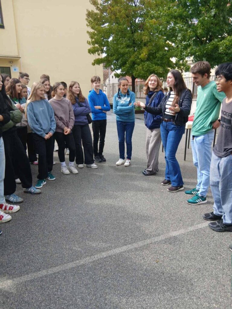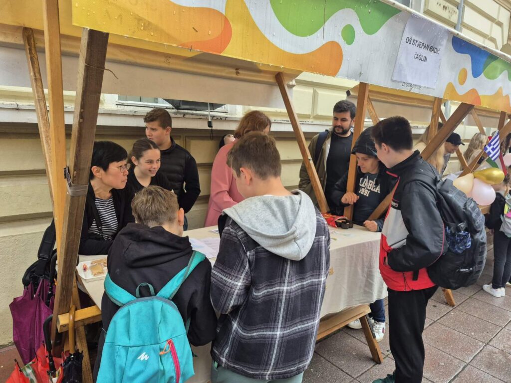 Nakon završetka događanja u pješačkoj zoni voditeljica Eko centra Latinovac, gospođa Danijela Beretin, s volonterima je posjetila OŠ Antuna Kanižlića. U školskom dvorištu održali su nekoliko zanimljivih aktivnosti s učenicima osmih razreda. Učenici su se natjecali i pritom naučili ponešto na španjolskom, portugalskom, danskom, francuskom i kineskom jeziku. Volonteri su u Latinovac došli preko programa Europskih snaga solidarnosti sufinanciranog sredstvima Europske unije.