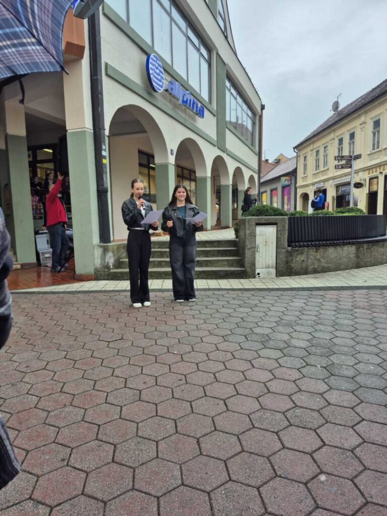 Zadnju točku izveli su učenici OŠ Ivana Gorana Kovačića iz Velike: Gabriel Vukašinović, učenik 5. a razreda, na saksofonu, i Tea Bradić, učenica 7. b razreda koja je otpjevala „Bella Ciao” uz podršku mentorice Ane Marinić.