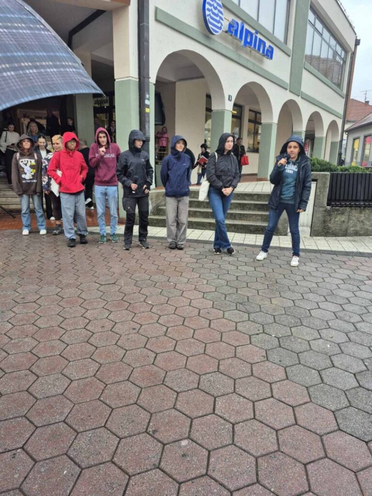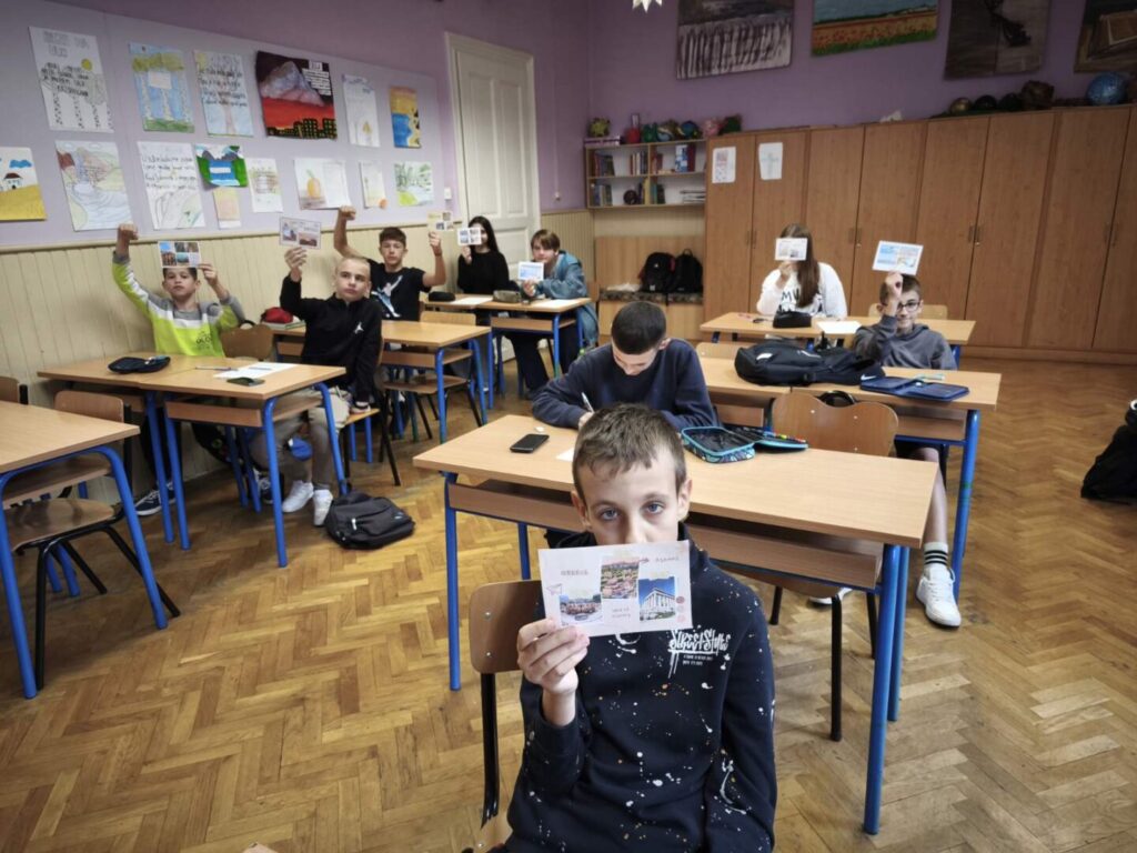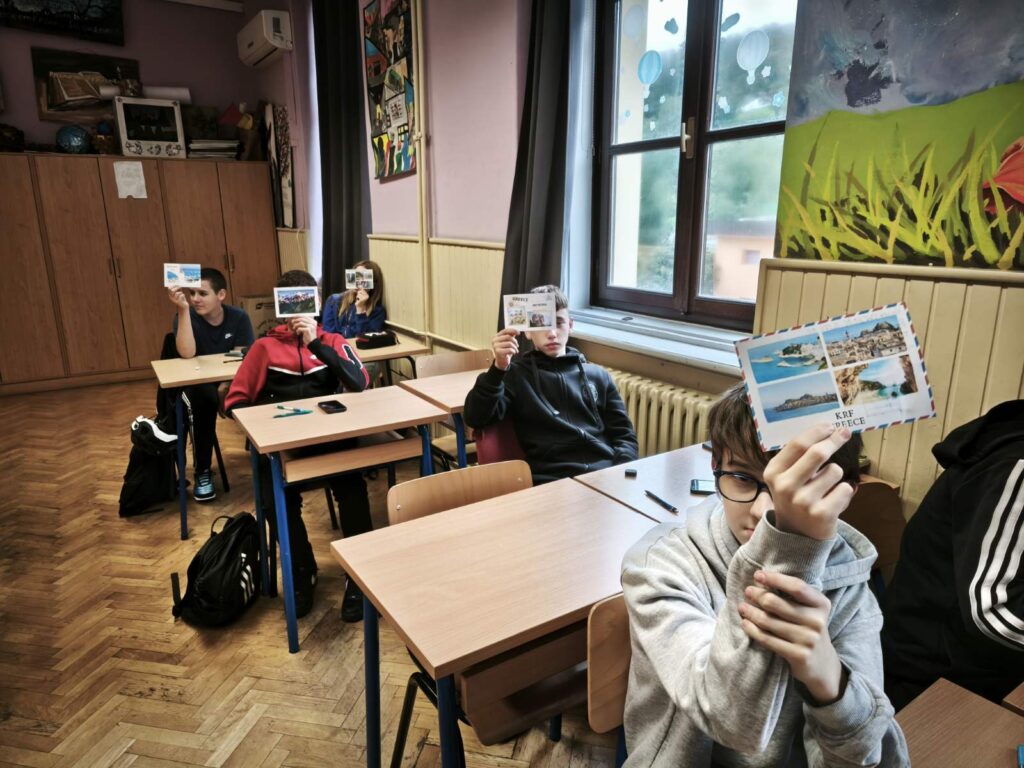 Zbog intenzivne kiše koja je padala tijekom prijepodneva, nastavnica Valentina Čurčić iz OŠ Antuna Kanižlića planiranu je aktivnost pisanja razglednica na grčkom jeziku s učenicima provela u učionici.