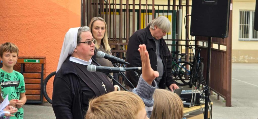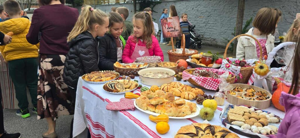 Školskim dvorištem  širili su se mirisi kruha, peciva i plodova zemlje i veseli smijeh naših učenika. Lijep i topao listopadni četvrtak bio je idealan za slavlje pa smo i ovaj Dan kruha obilježili u školskom dvorištu. Ove smo godine uistinu slavili zajedništvo koje pruža blagovanje kruha izloživši sve što su učenici donijeli za blagovanje na zajedničke stolove. Na početku svečanosti u objema smjenama učenici nižih razreda pripremili su prigodan program uz pomoć svojih učiteljica i vjeroučiteljice. Pjesmom i recitacijama slavili su zemlju i sve plodove koje nam velikodušno daje. Nakon što su učenici pokazali svoje vještine, velečasni Krunoslav Juraković i velečasni Mislav Juraković uz molitvu i prigodne riječi iz Evanđelja blagoslovili su sve ono što se našlo na stolu. Učenici su nakon blagoslova zajedno s učiteljima i roditeljima blagovali darove zemlje i rada ruku svojih roditelja.