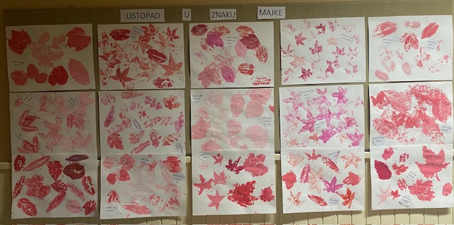 Učenici 4. a i učiteljica Zdenka najviše vole svoje misli i osjećaje izraziti bojom na nastavi Likovne kulture. Nakon pročitanih edukativnih letaka koje će dati svojim majkama radili su otisak lišća. Boja, naravno, ružičasta.