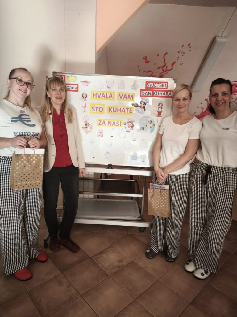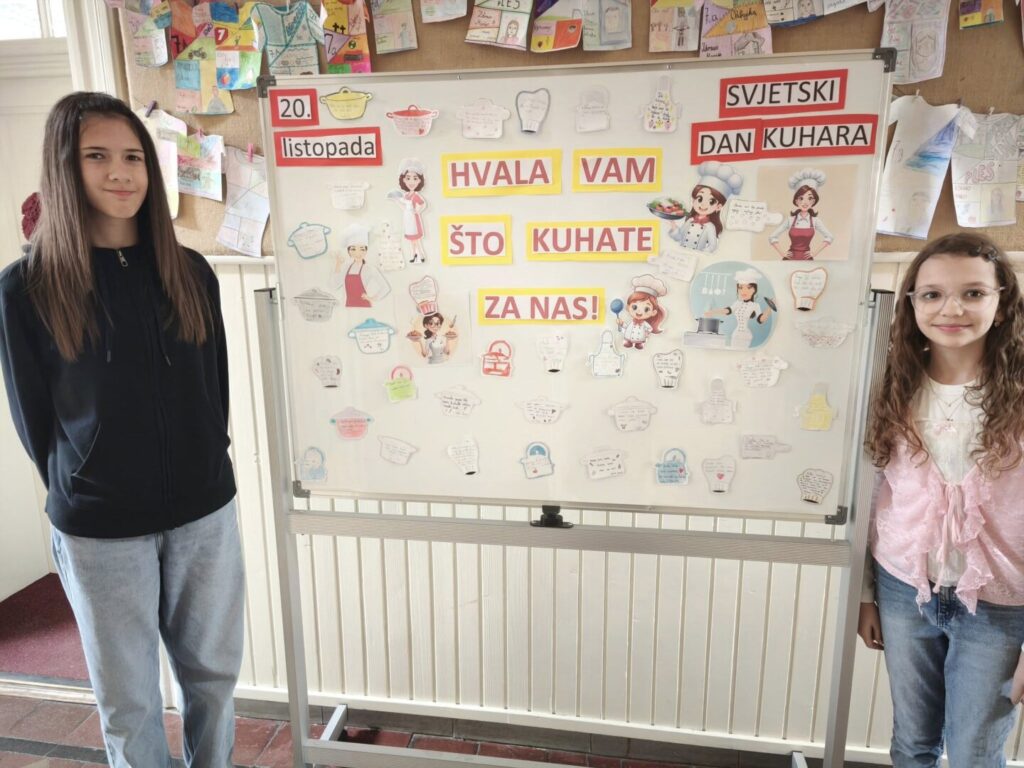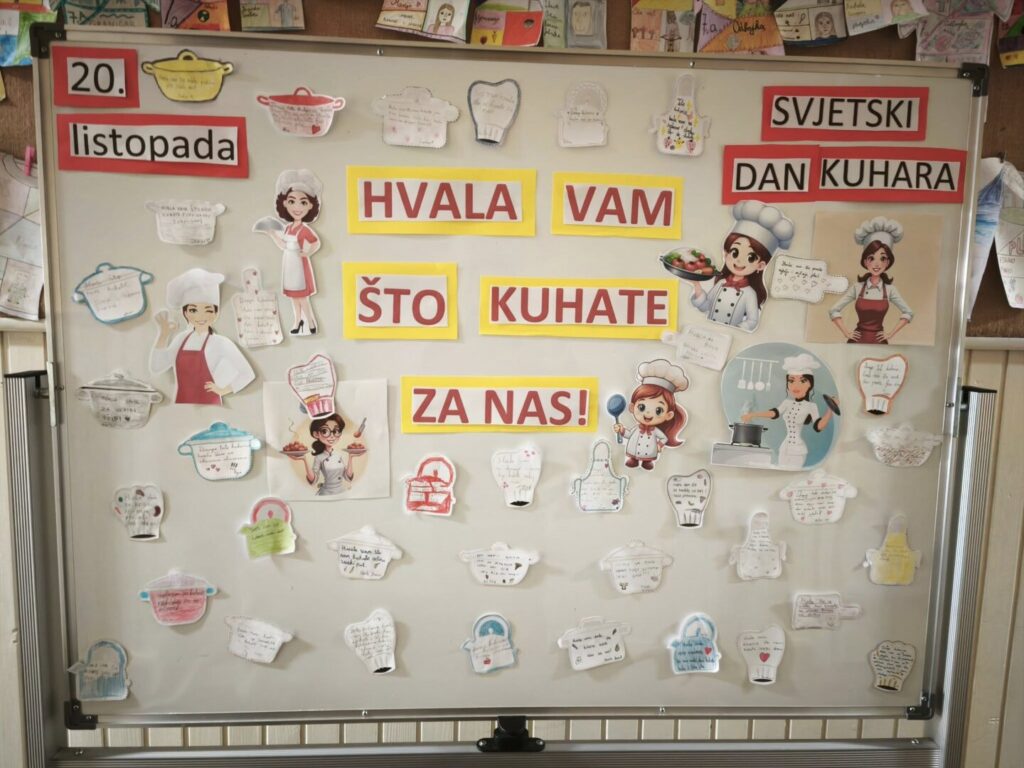 Danas smo obilježili Svjetski dan kuhara. Tim smo povodom razveselili naše tete kuharice: ravnateljica ih je darivala prigodnim poklonima, a učenici 7.razreda složili su im pano zahvale na kojemu su ispisali svoje poruke i zahvale za svakodnevne ukusne i zdrave obroke koje im kuhaju.