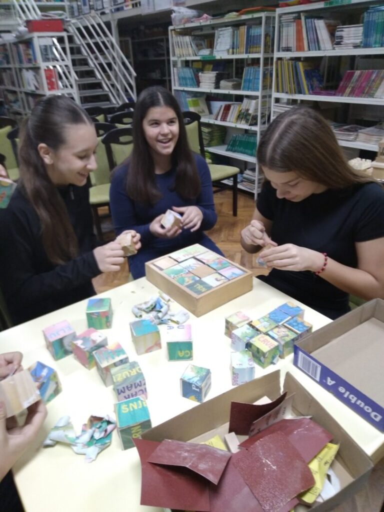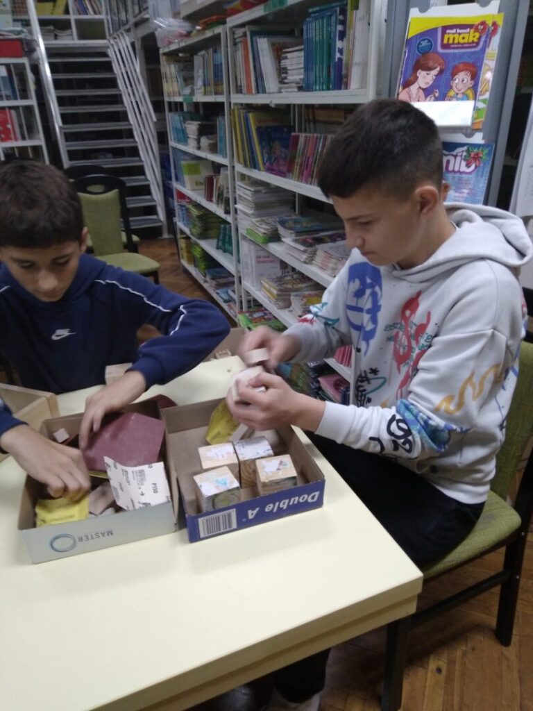 Mladi knjižničari imat će zadatak na sljedećoj radionici nalijepiti na kocke dijelove naslovnica bajki.