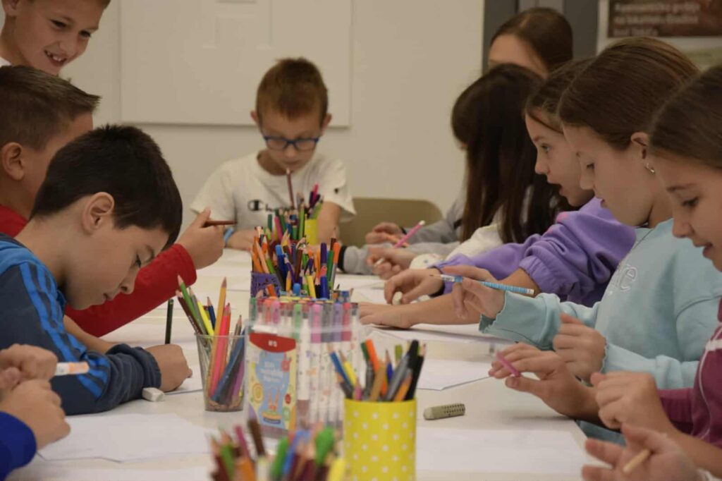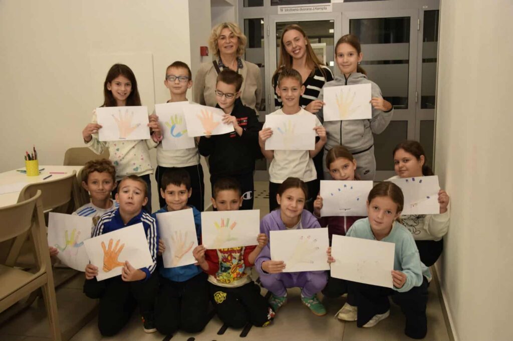 Nakon razgledavanja nestrpljivo su sjeli za stol u muzejskoj radionici. Uz poznatu Kuntarićevu skladbu “Ta tvoja ruka mala” zamišljali su tu ruku, crtali je i ukrašavali onako kako izgledaju ženske ruke u današnje vrijeme.