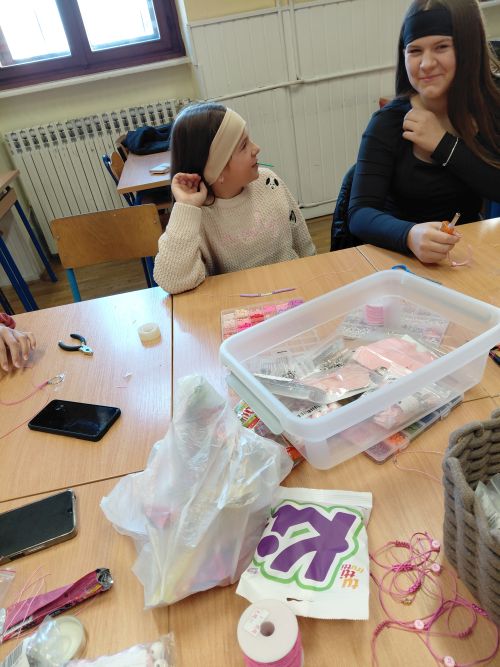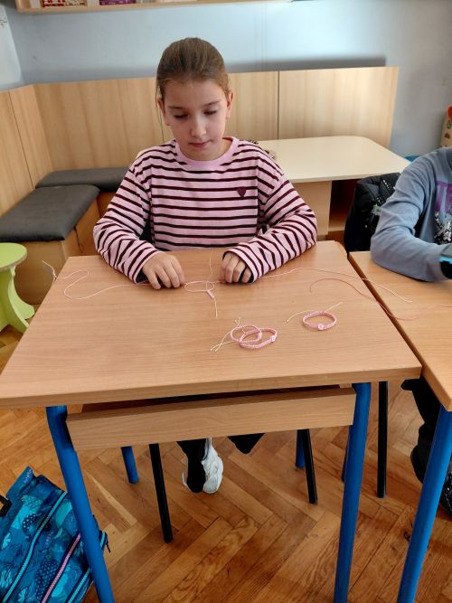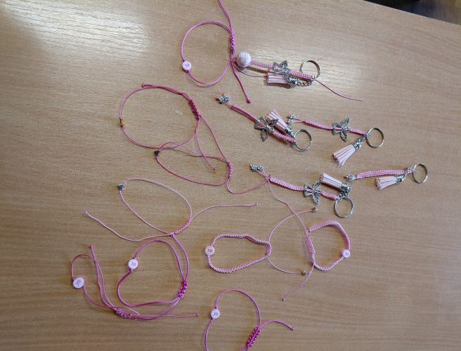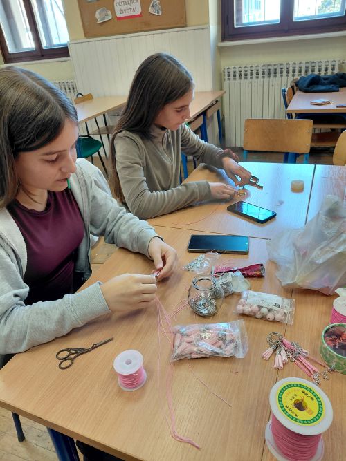 Svoj doprinos obilježavanju Ružičastog listopada dali su i učenici trećih i sedmih razreda. S našom časnom sestrom Slavkom izrađivali su narukvice i privjeske za ključeve. Najljepši poklon mami – djetetovih ruku djelo.