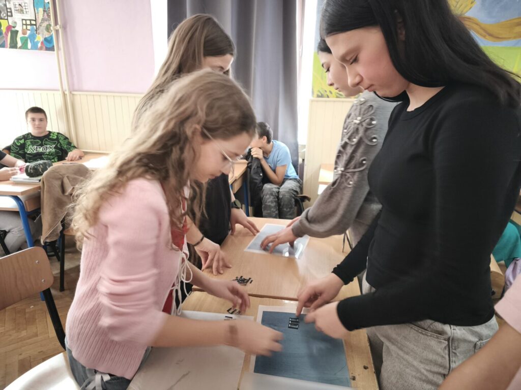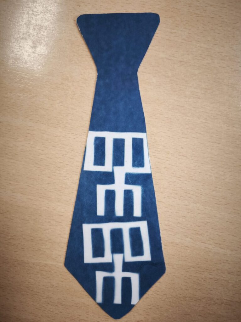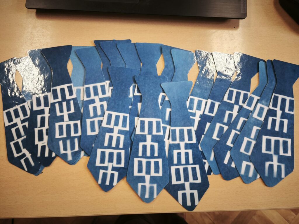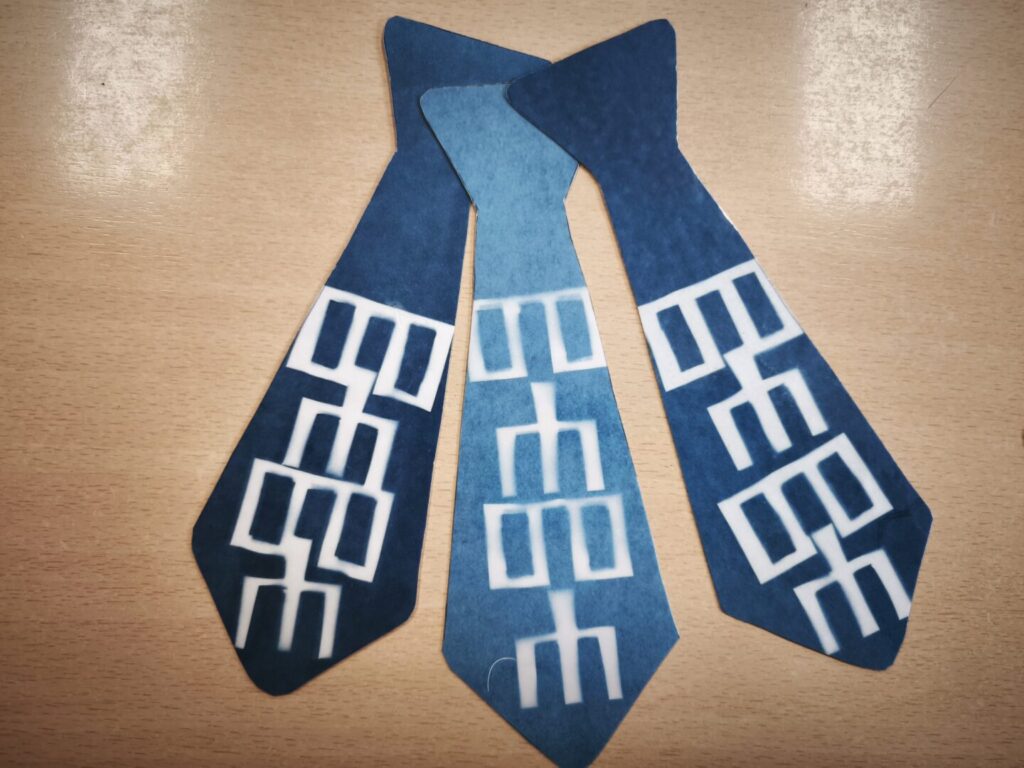 Učenici 7.a razreda upoznali su se s tehnikom cijanotipije. “Fotografirali” su glagoljična slova i napisali riječ tata. Papir su natopili solima željeza, posušili te na njih otisnuli riječ tata na glagoljici. Potom su papir ostavili na sunčanom mjestu kako bi se potaknula kemijska reakcija. Jedna od soli željeza pod utjecajem sunčeve svjetlosti mijenja boju u tamnoplavu, a glagoljična slova sprječavaju tu reakciju pa ostaje bijeli otisak na papiru. Zatim su papir ispirali pod vodom i ostavili da se osuši u tamnom prostoru. Uslijedilo je plastificiranje i rezanje oblika kravate. Ovom su radionicom, pod vodstvom učiteljica Danijele i Valentine, obilježili Međunarodni dan kravate te se pripremili za Movember – aktivnosti u mjesecu studenom kako bi se podigla svijest o zdravstvenim problemima muškaraca.