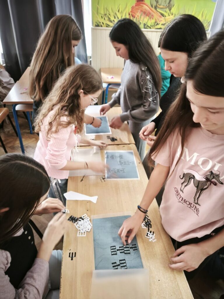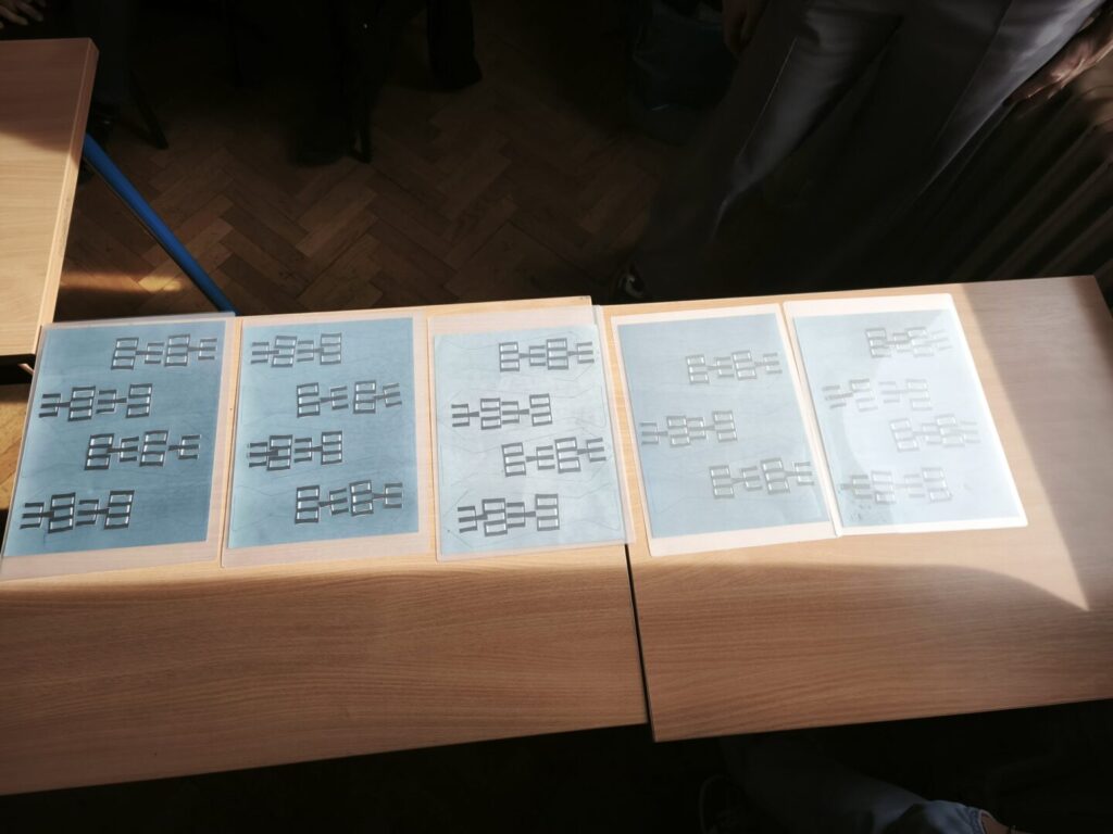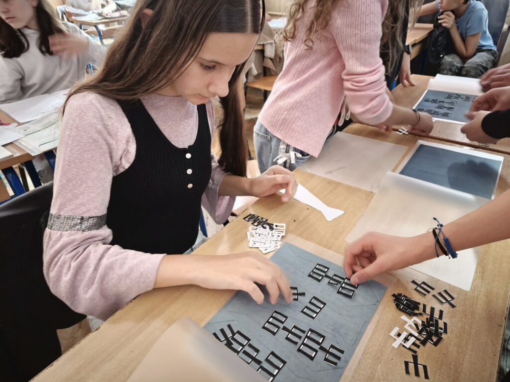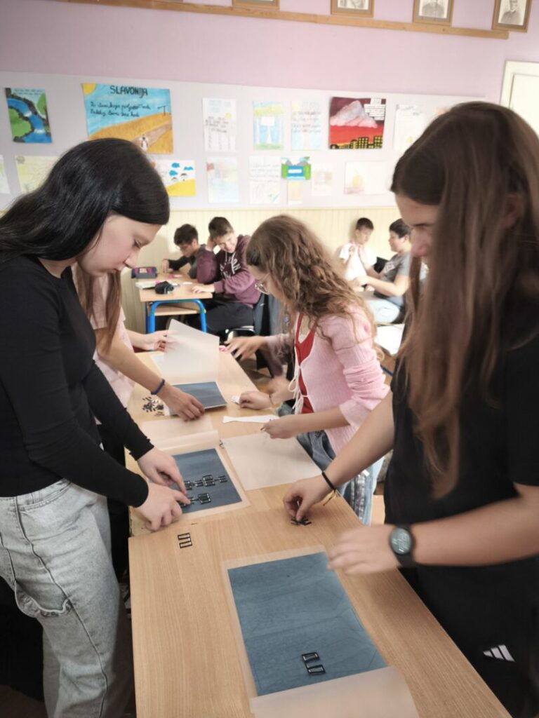 Učenici 7.a razreda upoznali su se s tehnikom cijanotipije. “Fotografirali” su glagoljična slova i napisali riječ tata. Papir su natopili solima željeza, posušili te na njih otisnuli riječ tata na glagoljici. Potom su papir ostavili na sunčanom mjestu kako bi se potaknula kemijska reakcija. Jedna od soli željeza pod utjecajem sunčeve svjetlosti mijenja boju u tamnoplavu, a glagoljična slova sprječavaju tu reakciju pa ostaje bijeli otisak na papiru. Zatim su papir ispirali pod vodom i ostavili da se osuši u tamnom prostoru. Uslijedilo je plastificiranje i rezanje oblika kravate. Ovom su radionicom, pod vodstvom učiteljica Danijele i Valentine, obilježili Međunarodni dan kravate te se pripremili za Movember – aktivnosti u mjesecu studenom kako bi se podigla svijest o zdravstvenim problemima muškaraca.