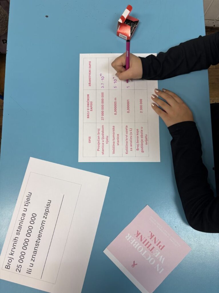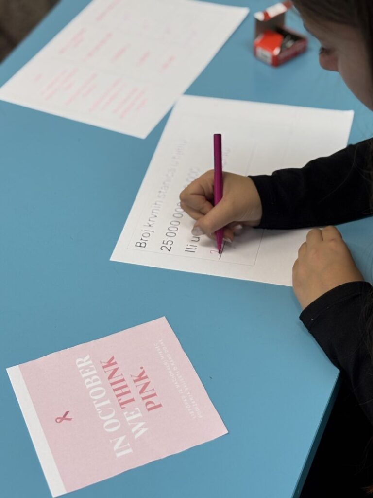 Učenici 7.a i 7.b razreda na nastavi Matematike obilježili su Ružičasti listopad u sklopu projekta MAMA BUDI ZDRAVA.
