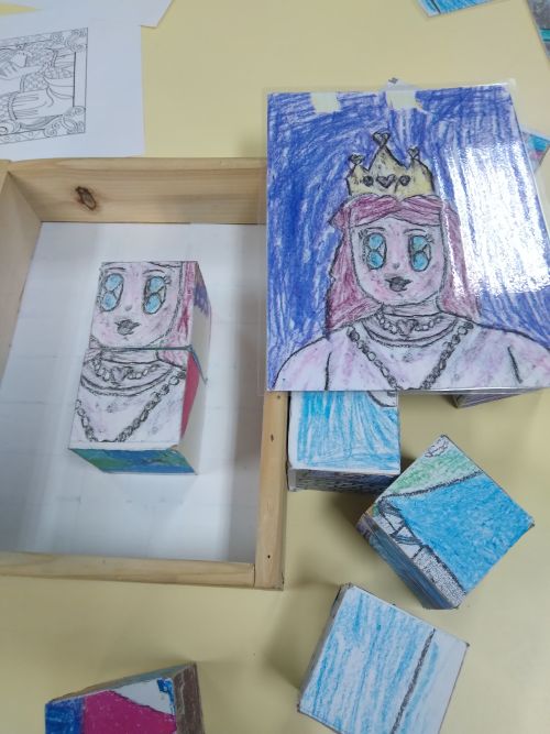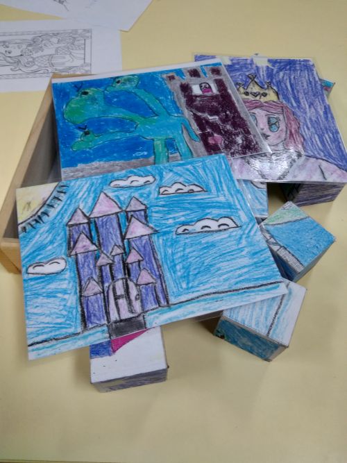 Nakon toga slaganje kocaka koje su oslikane motivima iz bajke i dvorca od drvenih elemenata koji je