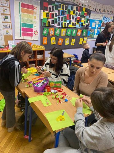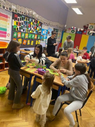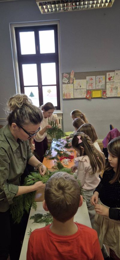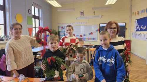 Učenici 1. a razreda zajedno s mamama i učiteljicom Elvirom okušali su se u izradi božićnog vijenca za vrata. U pravom blagdanskom duhu prvašići su pokazali svoju spretnost, ali i strpljenje. Radionica je ispunila učionicu druženjem i smijehom, a nastali vijenci uljepšat će domove za nadolazeće blagdane.