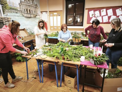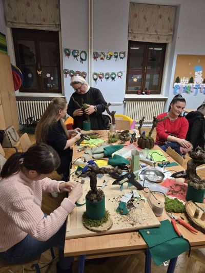 Prekrasne aranžmane su strpljivo i marljivo izrađivale naše učiteljice i učiteljice u mirovini. Znamo da će njihovi aranžmani krasiti mnoge domove ovih božićnih blagdana.
