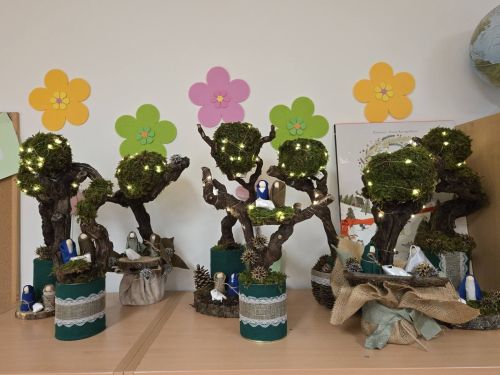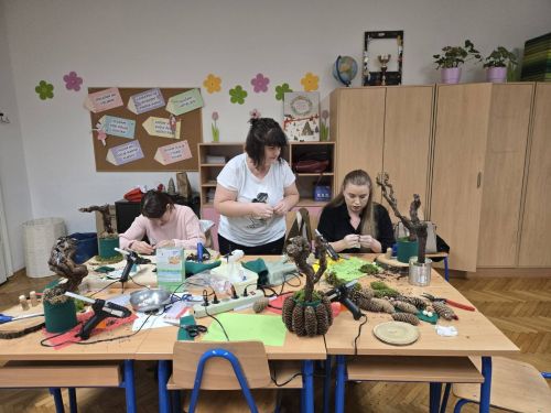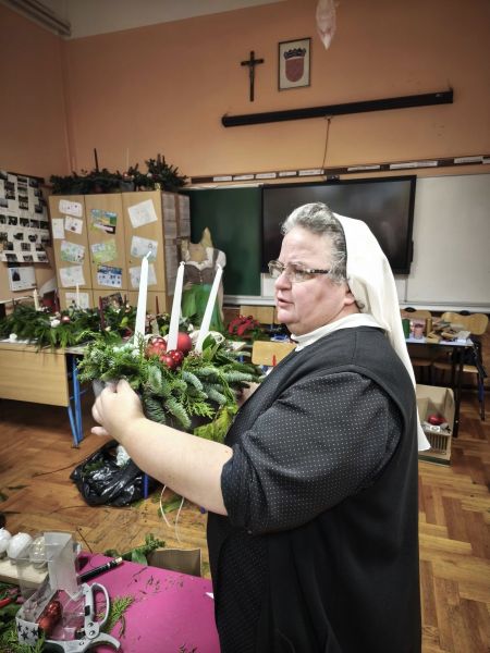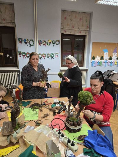 Majke učenika 2.b izrađivale su malo drukčije jaslice. Radionicu je vodila naša časna s. Slavka.