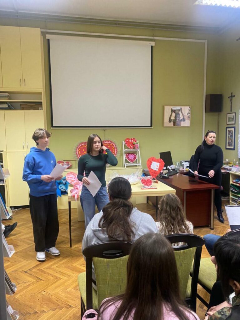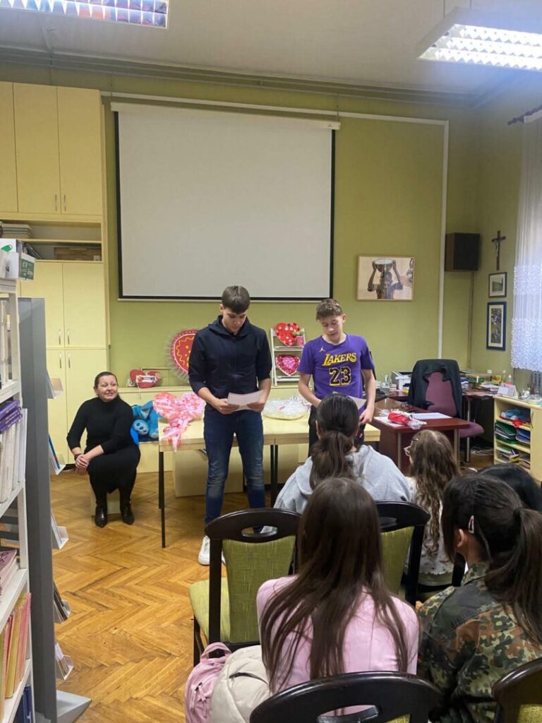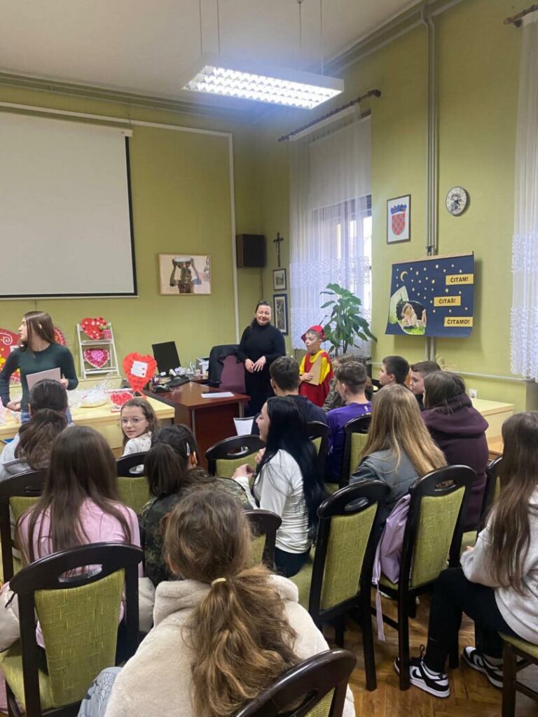 Na prigodnoj svečanosti u prostoru školske knjižnice, učenici 7. razreda pripremili su kratak program. Čitali su ljubavne pjesme poznatih hrvatskih pjesnika,a svoje su literarne radove pročitali i nagrađeni učenici.
