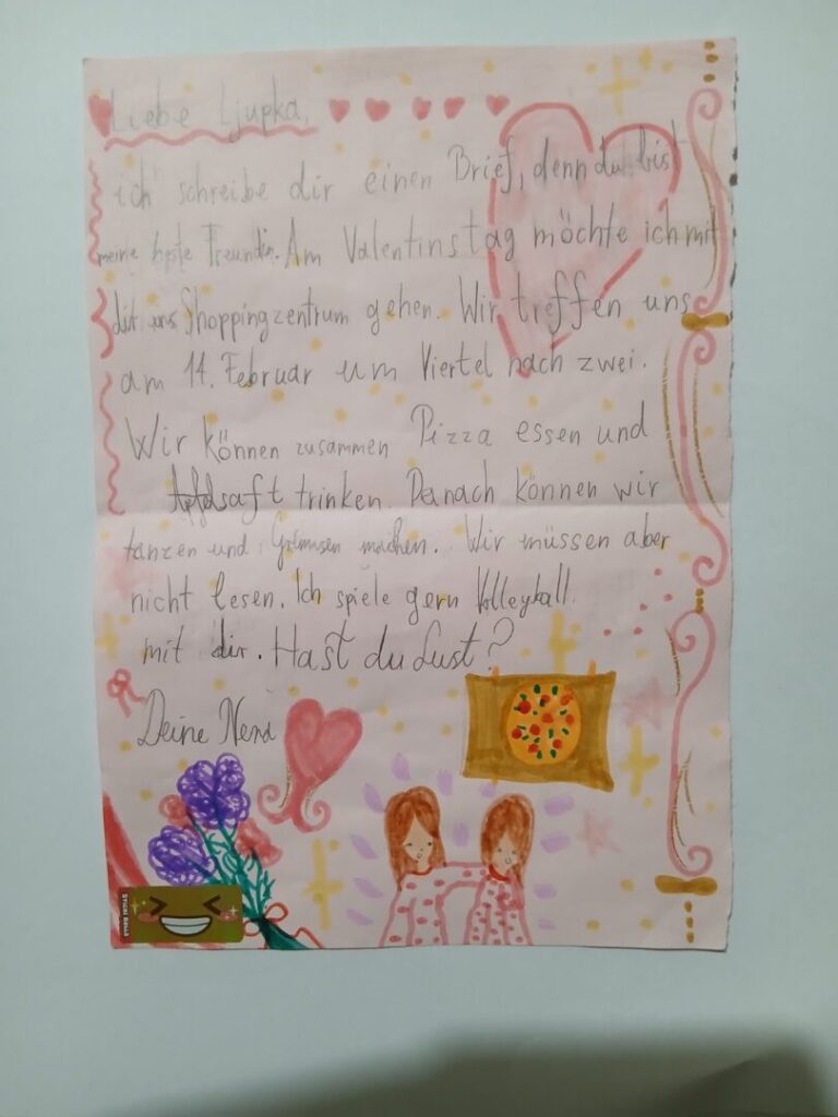 Ove godine učenici navedenih županija napisali su valentinovska pisma na njemačkom ili engleskom jeziku, u kontroliranim uvjetima tijekom nastave i prema zadanim smjernicama. Najoriginalnija pisma učenice su pročitale na online Književnoj čajanci.