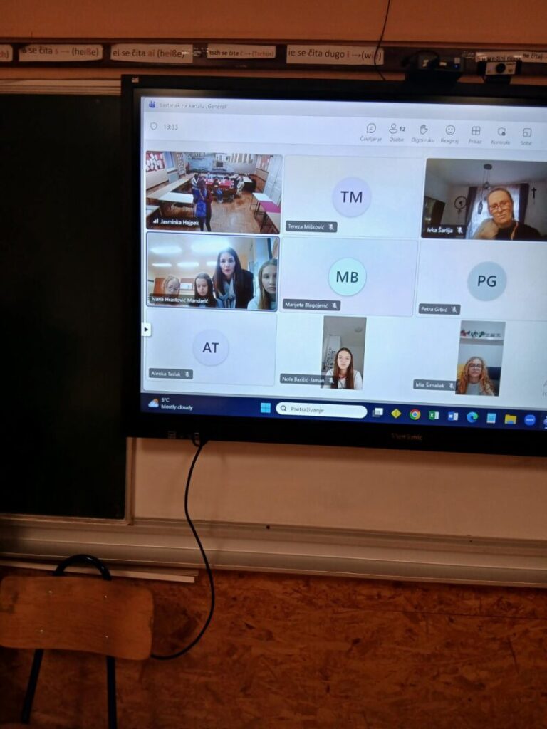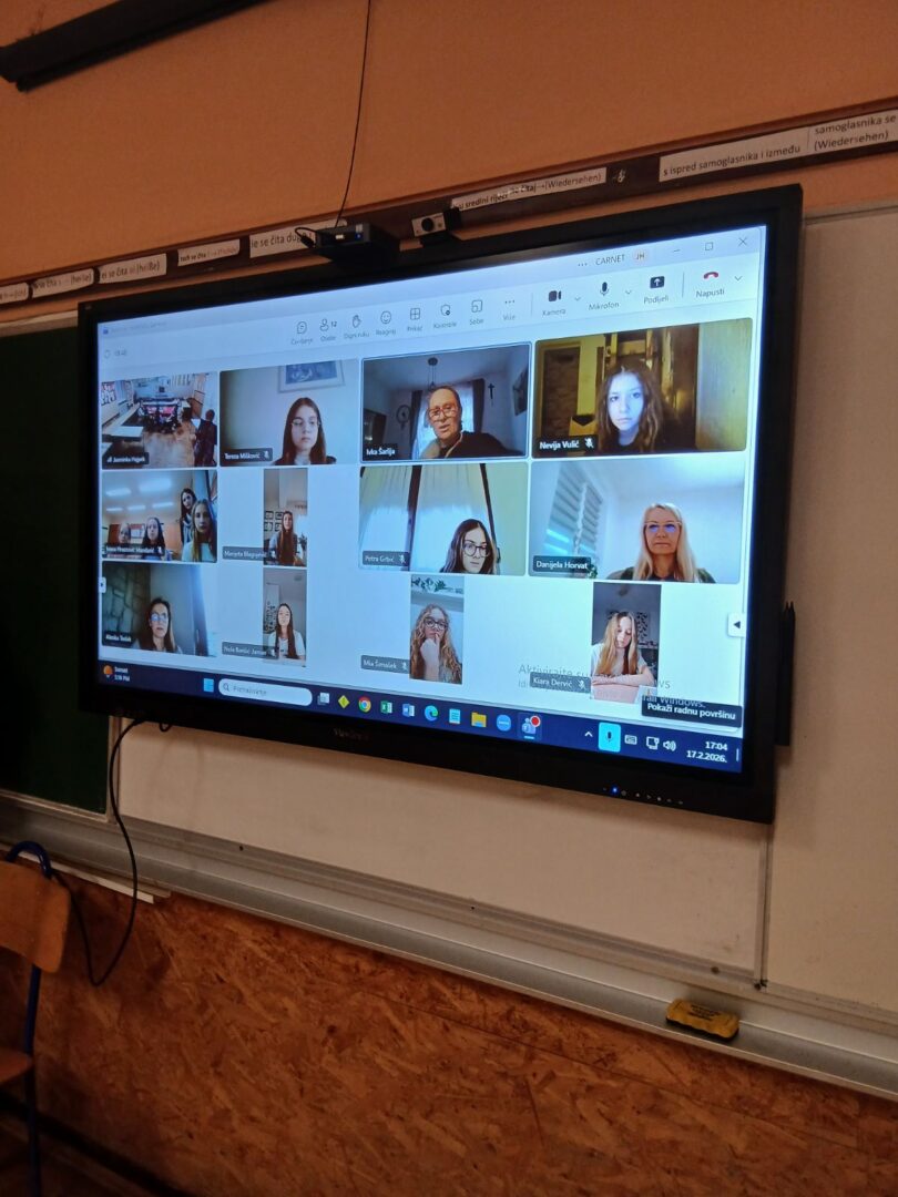 Putem videopoziva na Književnoj čajanci sudjelovale su učenice iz OŠ Šimuna Kožičića Benje iz Zadra: Marijeta Blagojević, Tereza Mišković i Petra Grbić pod vodstvom mentorice Ivke Šarlija.