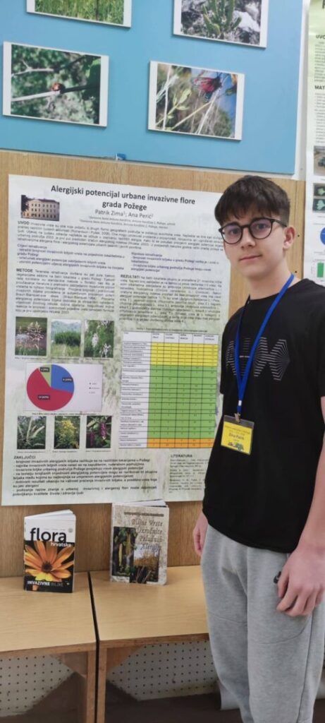 Naš učenik Patrik Zima dostojno je i s ponosom branio boje škole te ostvario izniman uspjeh – osvojio je odlično 6. mjesto s istraživačkim radom „Alergijski potencijal urbane invazivne flore grada Požege“.